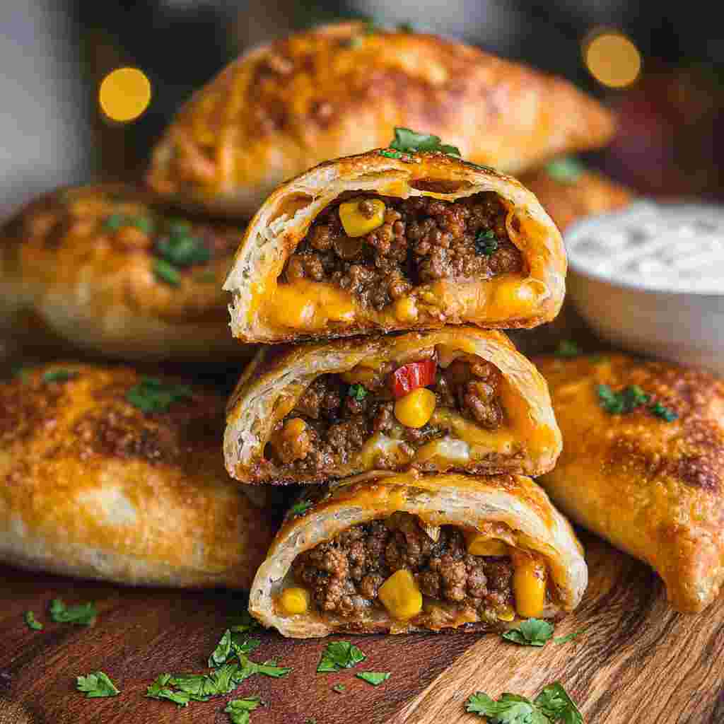 This recipe is highly customizable based on your preferences. You can swap the ground beef for shredded chicken, ground turkey, or even black beans for a vegetarian option. If you want to change the cheese, try pepper jack for a spicy kick or mozzarella for an extra stretchy cheese pull. If you do not have crescent dough, you can use refrigerated biscuit dough—just flatten the biscuits into circles before filling. You can also add extra fillings like corn, diced bell peppers, or sautéed onions to the beef mixture for added texture and flavor.