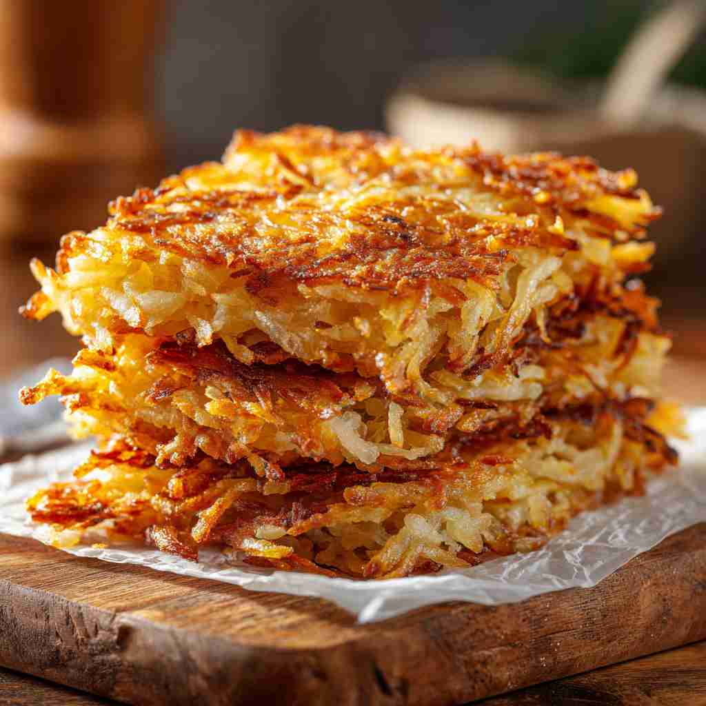 These crispy hash browns are the ultimate companion to classic breakfast staples like over-easy eggs and thick-cut crispy bacon. For a more elevated morning meal, serve them alongside a smoked salmon hash or topped with a dollop of sour cream and fresh chives. They also work beautifully as a base for a breakfast stack, layered with ham, melted cheese, and a poached egg.Storage, Freezing & Reheating