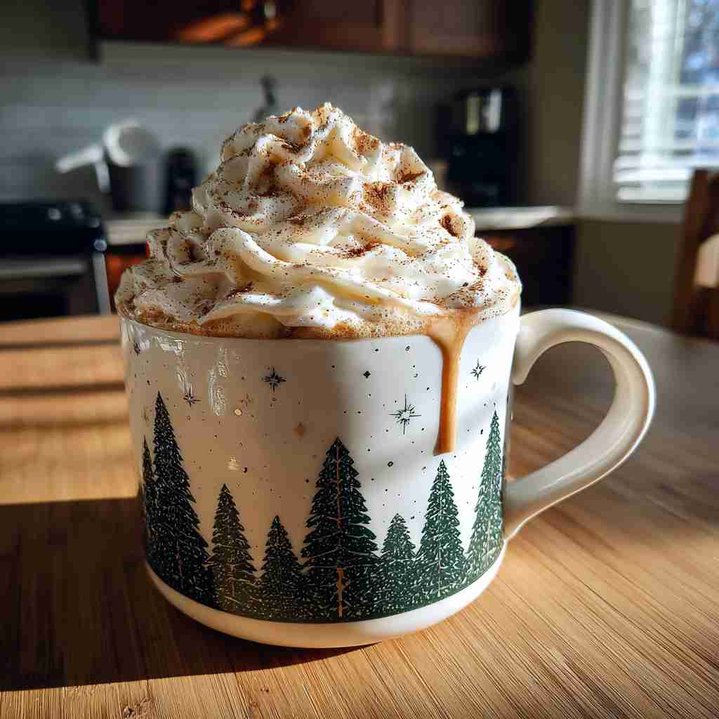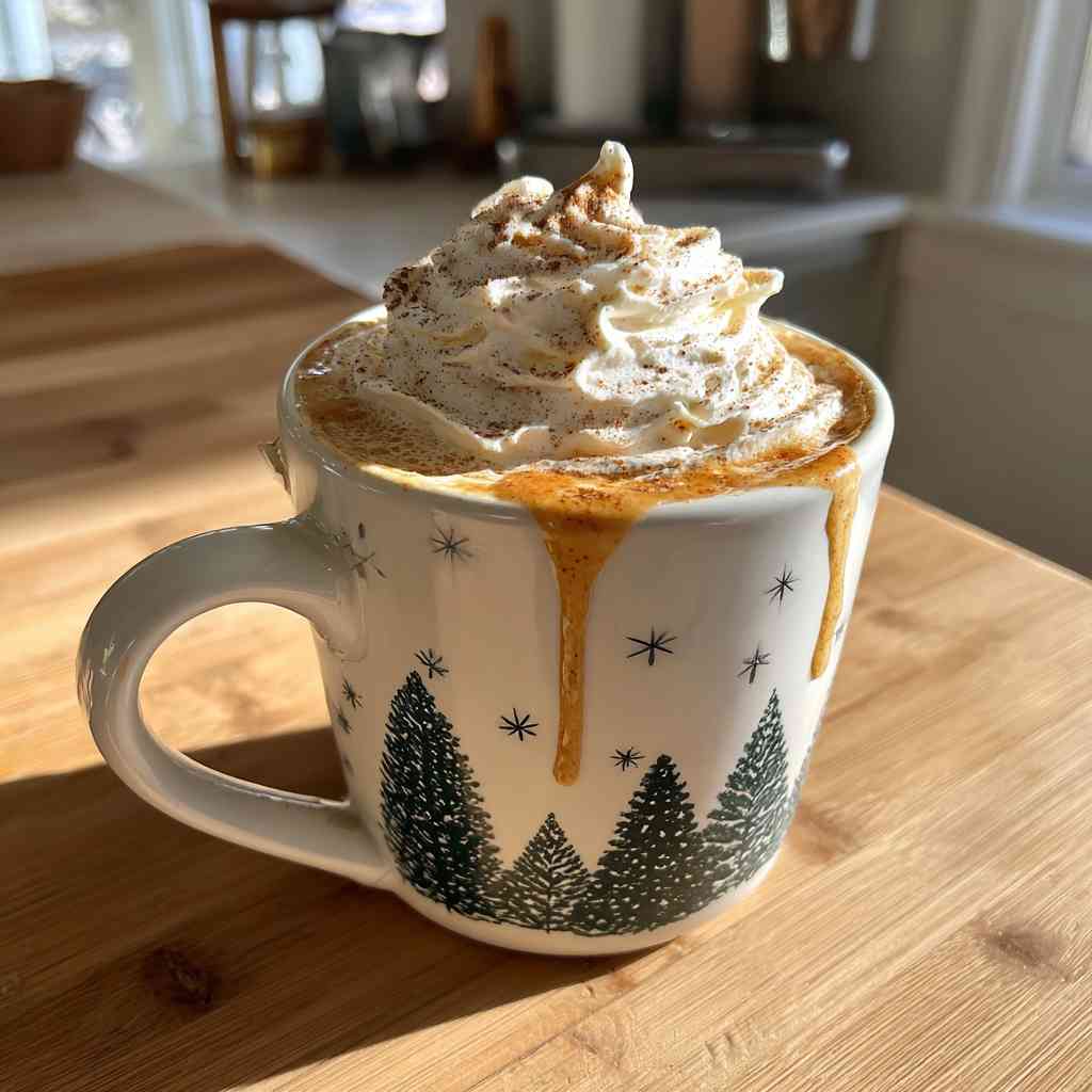 Serve this festive latte in your favorite oversized holiday mug. Garnish the top with a dusting of ground cinnamon or nutmeg and a whole cinnamon stick for an elegant presentation. This drink pairs beautifully with holiday treats like gingerbread cookies, snickerdoodles, or a slice of cranberry orange bread. For an extra indulgent treat, top your latte with a dollop of whipped cream and a drizzle of caramel.